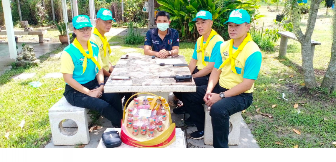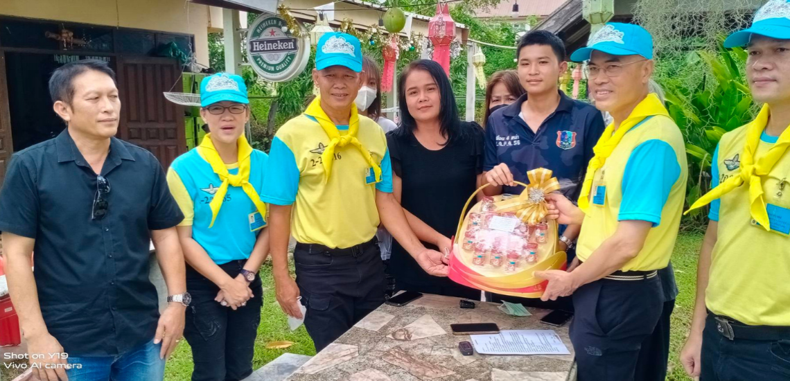 ผู้แทนจิตอาสาพระราชทานมอบกระเช้าผลไม้และเงิน เพื่อแสดงความชื่นชม ยกย่อง นายอรรถชัย พลเมืองดี